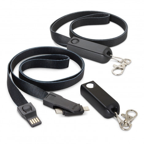 Lanyard-style charging cable with a badge holder clip which is ideal for work places, schools, conferences and events. It has a USB plug on one end with a Lightning connector (for iPhone) and a USB-C/Android connector on the other. The connectors are easily snapped in or out of the housing as required. Artex is for charging only and is not designed for data connections.