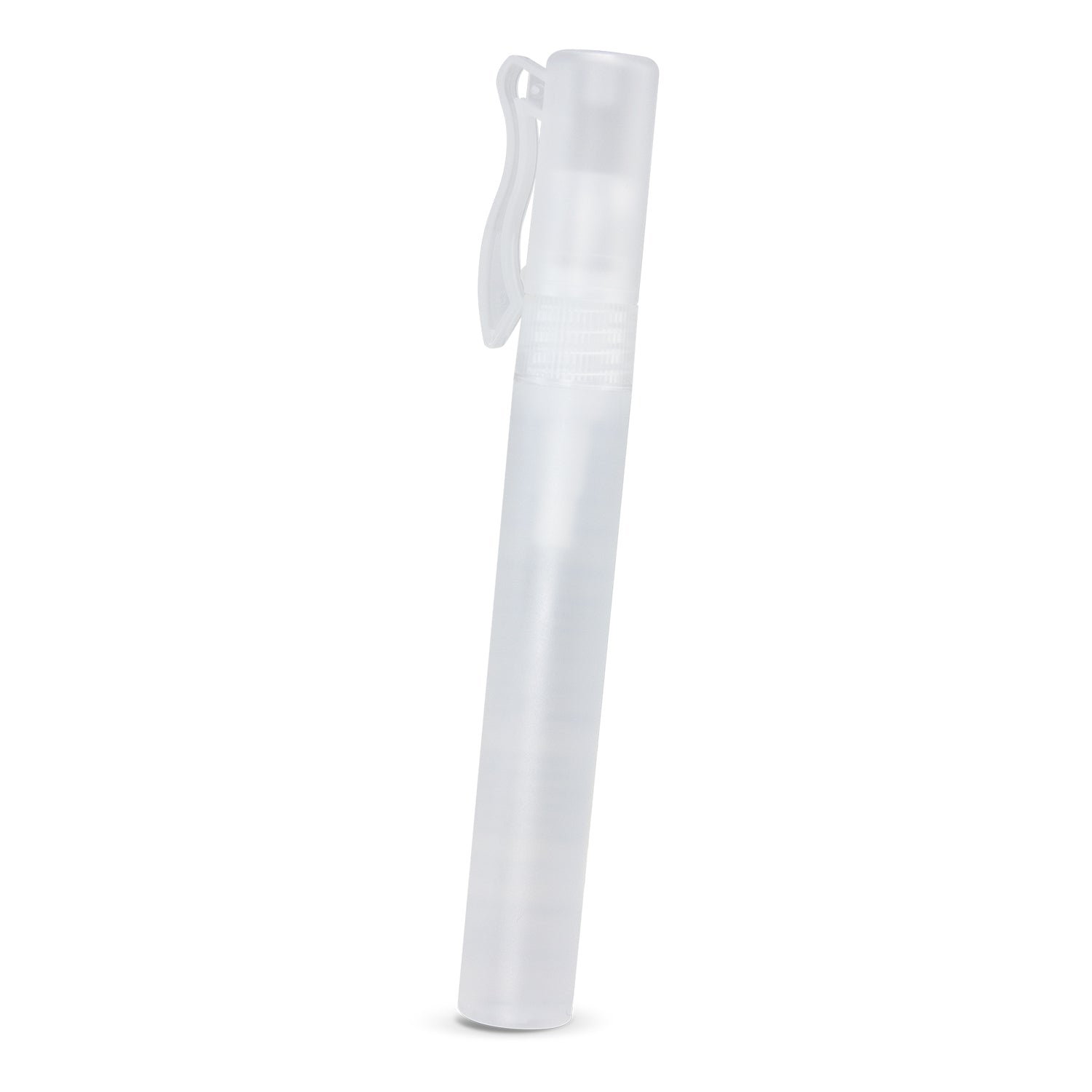 Pocket-size 8ml pump action hand sanitiser. It has full ingredient information printed on one side of the tube with plenty of room for branding on the other.