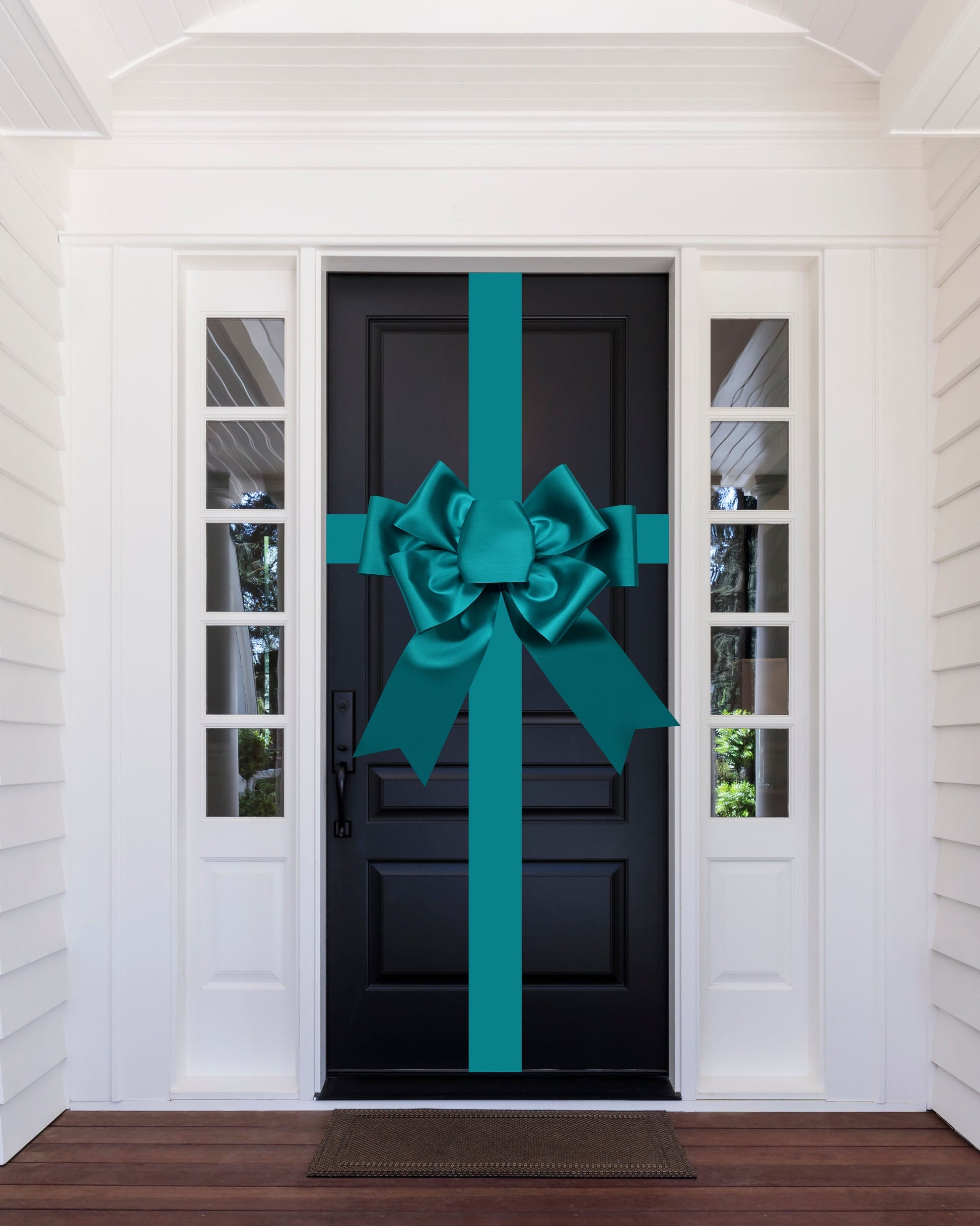 Each bow comes with double sided tape so the bow can be adjusted to fit the door perfectly.
